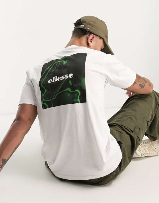ellesse – Vipera – T-Shirt in Weiß mit grünem Acid-Rückenprint