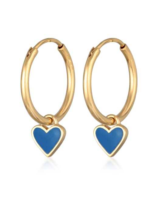 Elli – Vergoldete Damen-Creolen aus 925er Sterlingsilber mit Herzanhänger aus Emaille in Blau
