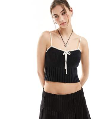 Emory Park – Strick-Camisole in Schwarz mit kontrastierendem Bindedetail