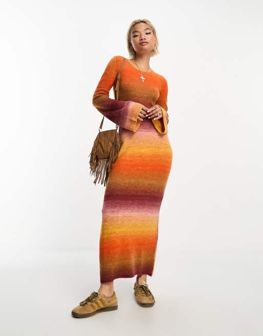 Emory Park – Strick-Maxikleid mit mehrfarbigem Farbverlauf und ausgestellten Ärmeln