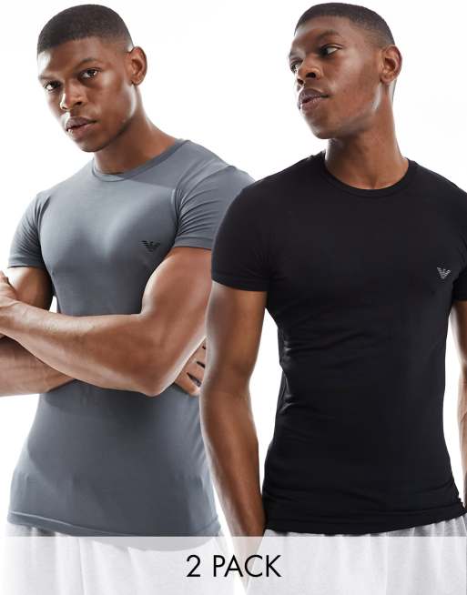 Emporio Armani – Bodywear – Bambus-T-Shirts in Schwarz und Grau im 2er-Pack