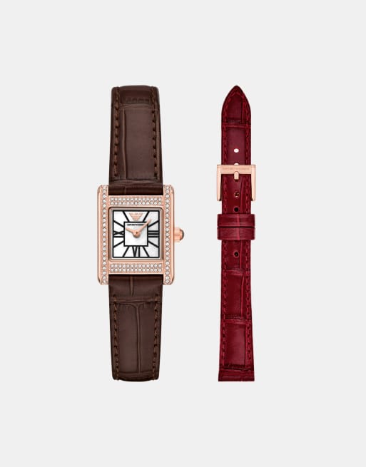 Emporio Armani – Damenuhr in Silberoptik mit auswechselbarem Lederarmband
