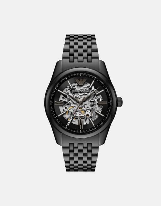 Emporio Armani – Herrenuhr aus Edelstahl in Schwarz mit Automatikwerk