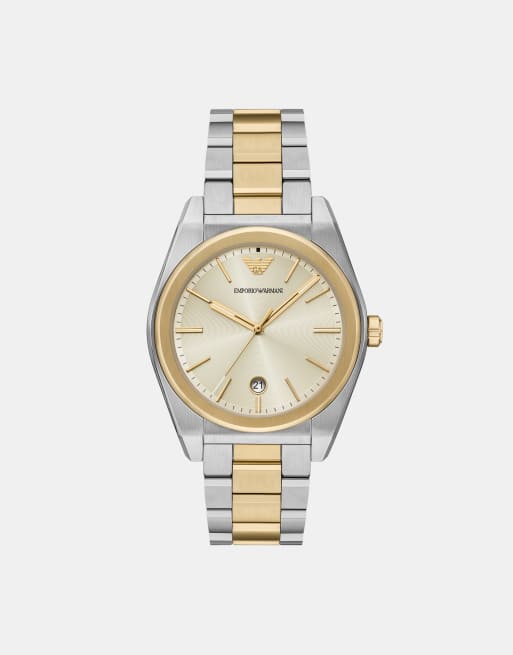 Emporio Armani – Herrenuhr aus zweifarbigem Edelstahl in Silberoptik mit drei Zeigern