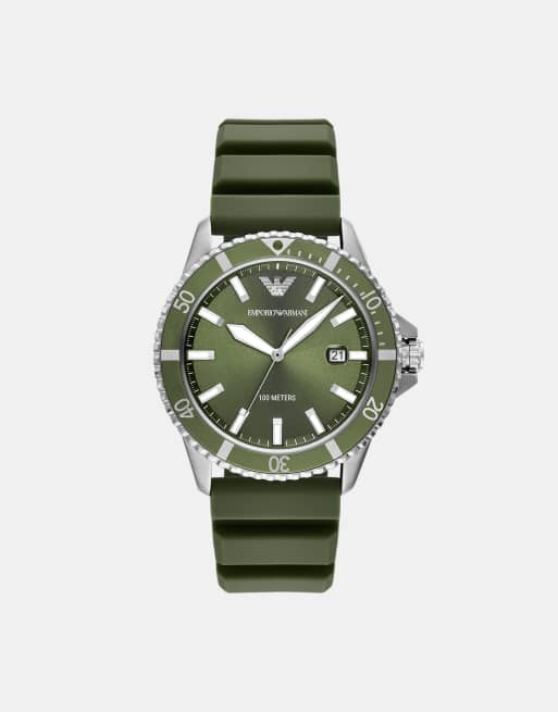 Emporio Armani – World Explorer – Silikon-Armbanduhr in Grün mit drei Zeigern und Datumsanzeige