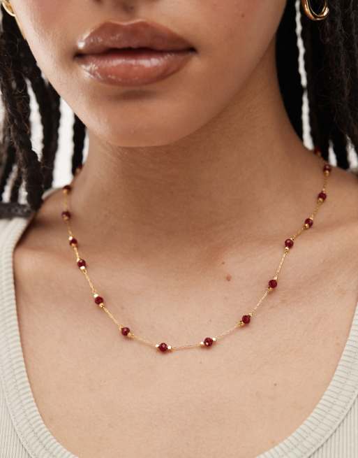 En Route – 18-karätig vergoldete Halskette mit roten Perlendetails