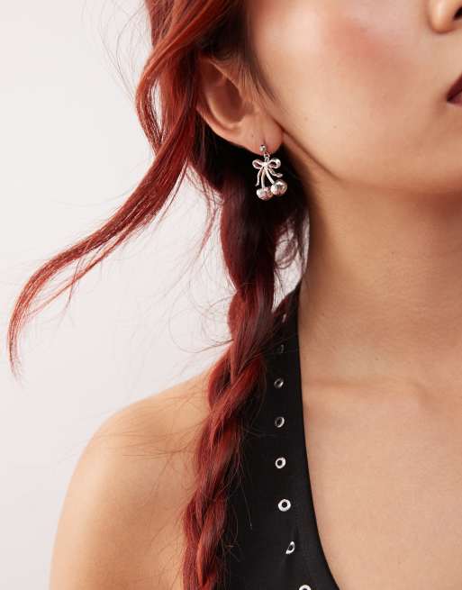 En Route – Cherry Ribbon – Ohrringe mit Palladium-Beschichtung und Kirschen-Schleifenverzierung