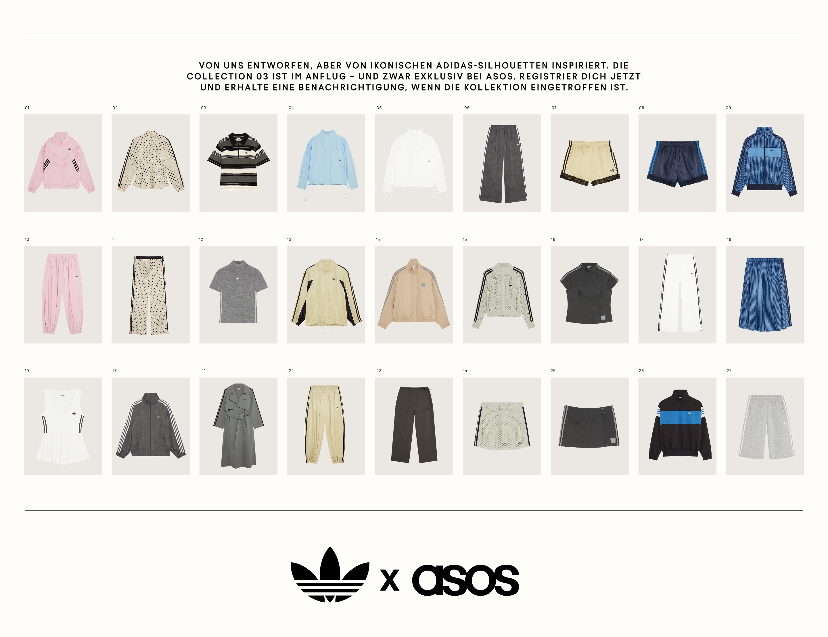 *Bei Registrierung erhältst du E-Mails zu exklusiven Events, Aktivitäten und neuen Produkten aus der adidas Originals by ASOS Kollaborationskollektion x ASOS. Du kannst dich jederzeit über den Abmeldelink am Ende jeder E-Mail abmelden. Deine Daten werden von uns drei Jahre lang gespeichert.