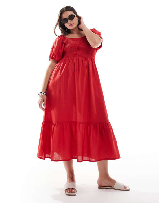 Esmée Curve Exklusiv – Maxi-Strandkleid in Rot mit Puffärmeln