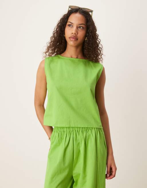 Esmee – Exclusive – Cropped Strandoberteil in grüner Leinenoptik