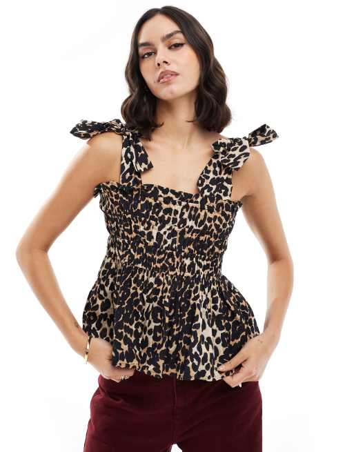 Esmée – Exclusive – Strandoberteil mit Leopardenmuster, geschnürter Schulter und gerafftem Oberteil, Kombiteil