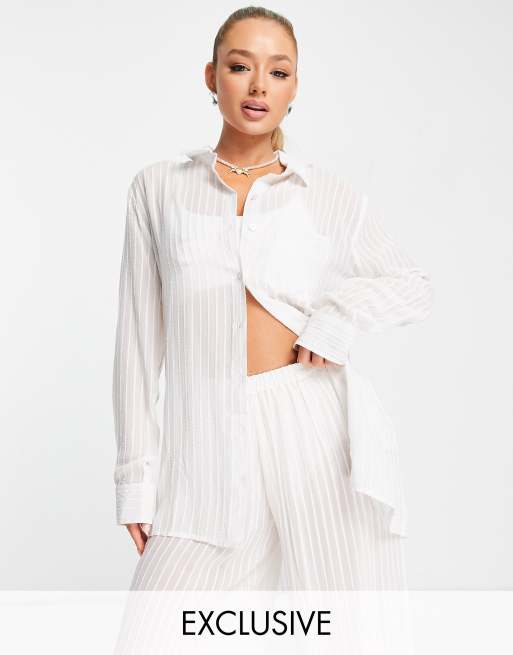 Esmee Exclusive – Transparentes Strandhemd in Weiß gestreift