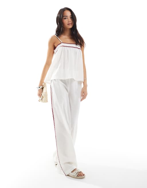 Esmée – Exklusiv – Strand-Set in Weiß und Rot mit Zackenlitze