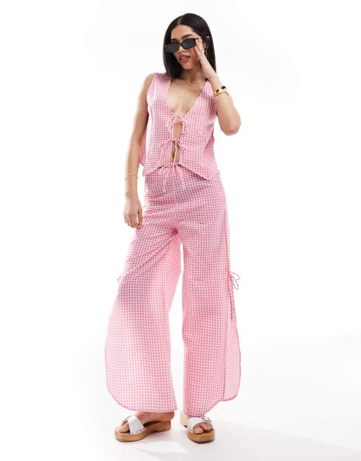 Esmee – Exklusive Strandhose mit rosa Vichy-Karomuster und seitlicher Schnürung