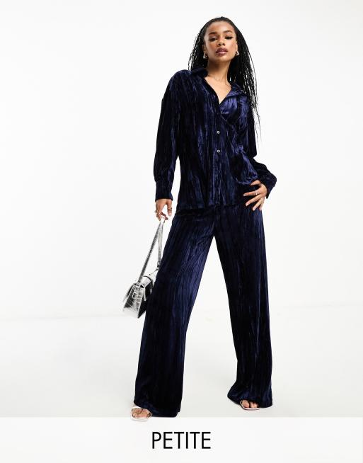 Extro & Vert Petite – Weit geschnittene Samthose in Mitternachtsblau, Kombiteil