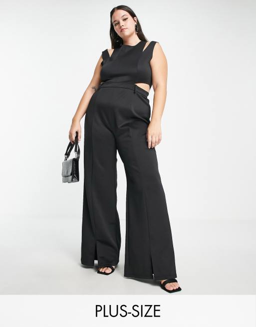 Extro & Vert Plus – Eleganter Jumpsuit in Schwarz mit weitem Bein und Cut-out