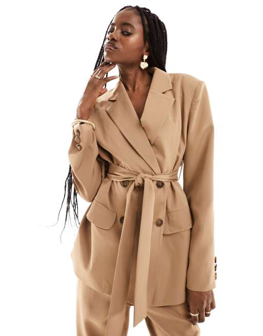 Extro & Vert – Blazer in Camel mit Bindegürtel, Kombiteil