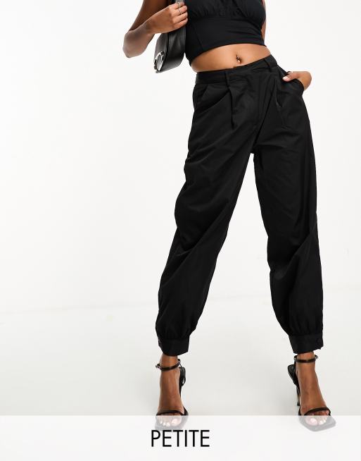 Extro & Vert Petite – Fallschirmhose aus Nylon in Schwarz mit Bündchen