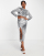 Extro & Vert – Set mit langärmligem, kurz geschnittenem Oberteil und Midirock in Silber mit Pailletten