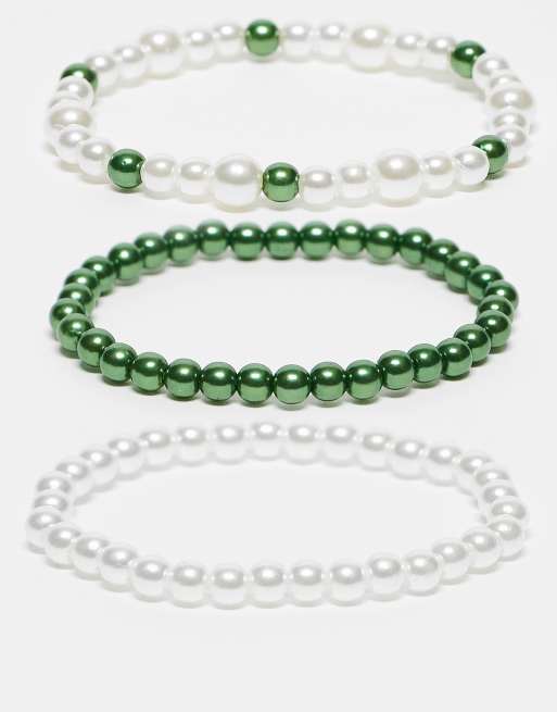 Faded Future – 3er-Pack elastische Armbänder mit Perlen in Grün