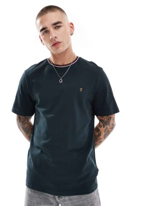 Farah – Alvin – T-Shirt in Marineblau mit Streifenverzierung