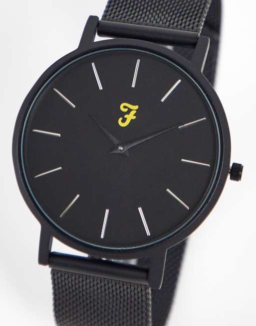 Farah – Armbanduhr mit schmalem Mesh-Armband in Schwarz