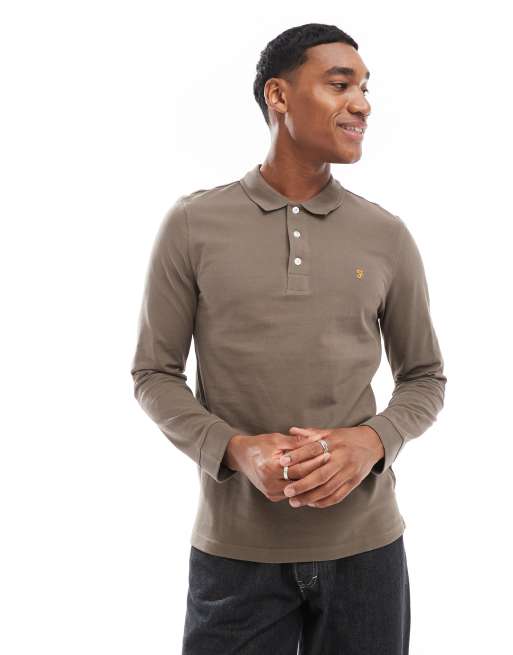 Farah – Blanes – Langärmliges Polohemd in Pilz-Grau