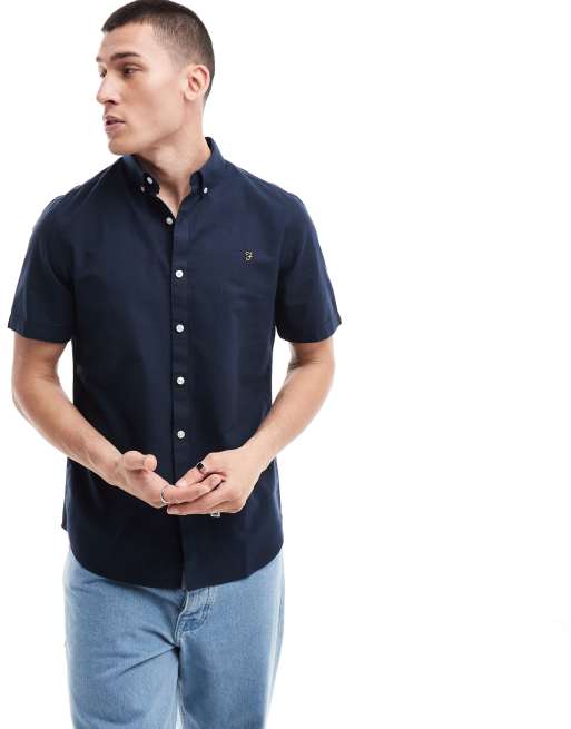 Farah – Brewer – Kurzärmliges Hemd in Marineblau mit schmalem Schnitt