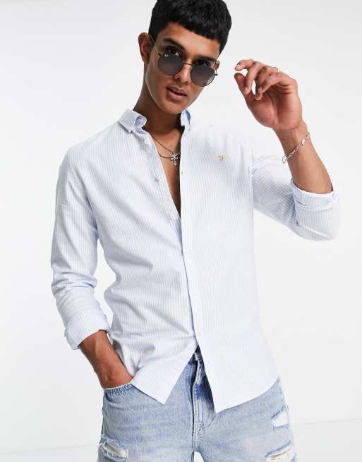 Farah – Brewer – Langärmliges Hemd in Blau gestreift