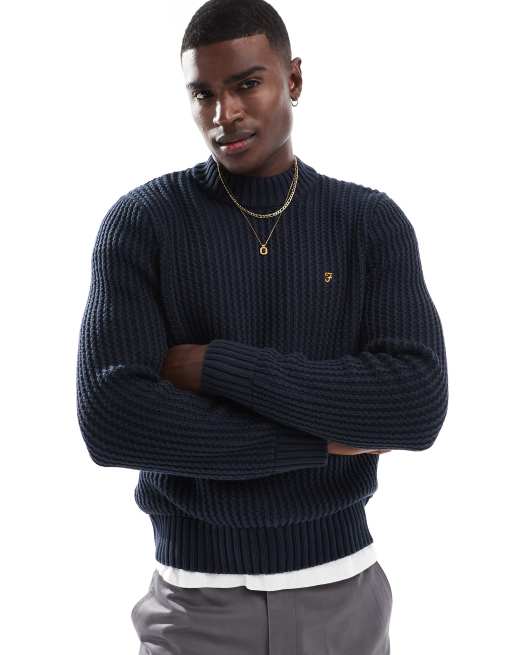 Farah – Burlington – Strickpullover in Marineblau mit Patentmuster