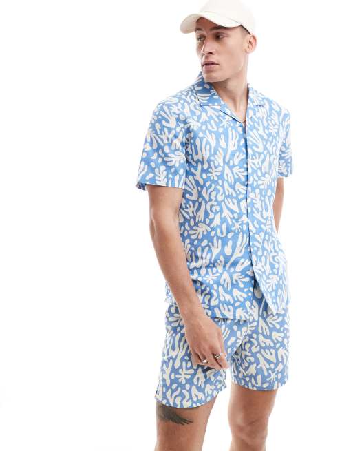 Farah – Kurzärmliges Hemd in Blau mit Print