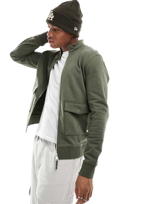 Farah – Pirlo – Sweatshirtjacke in Grün mit Reißverschluss