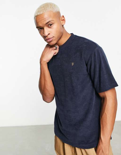Farah – Ronnie – Oversize-T-Shirt aus Frottee in Marineblau