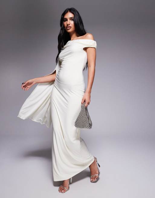 Fashionkilla – Anschmiegsames, figurformendes Maxikleid in Wollweiß mit One-Shoulder-Träger und auffälligem Ärmel