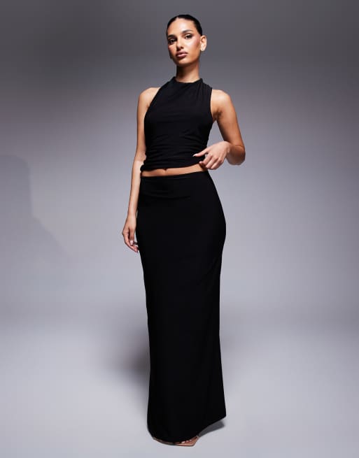 Fashionkilla – Doppellagiger, figurformender Maxirock aus weichem Stoff in Schwarz, Kombiteil