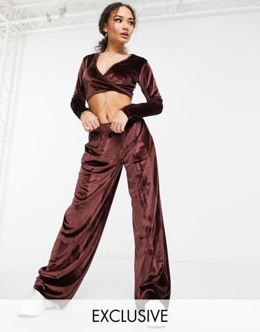 Fashionkilla exclusive velour crop top & joggers co ord in chocolate