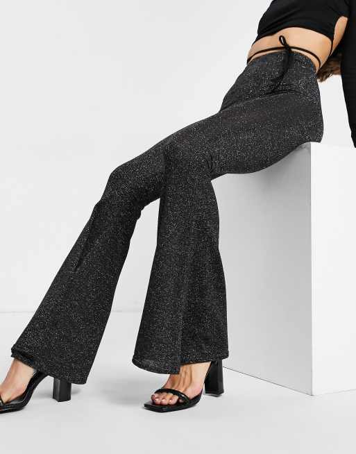 Fashionkilla – Glitzernde Hose mit weitem, ausgestellten Bein in Graphit