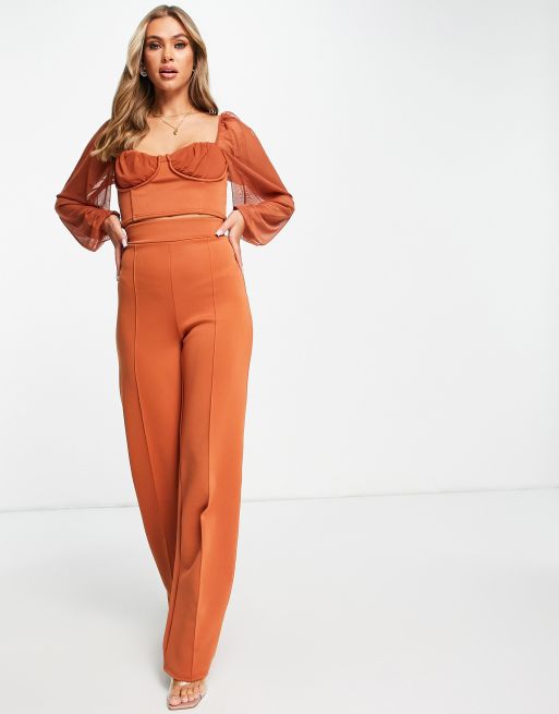 Fashionkilla – Hose in Rostrot mit weitem Bein, Kombiteil