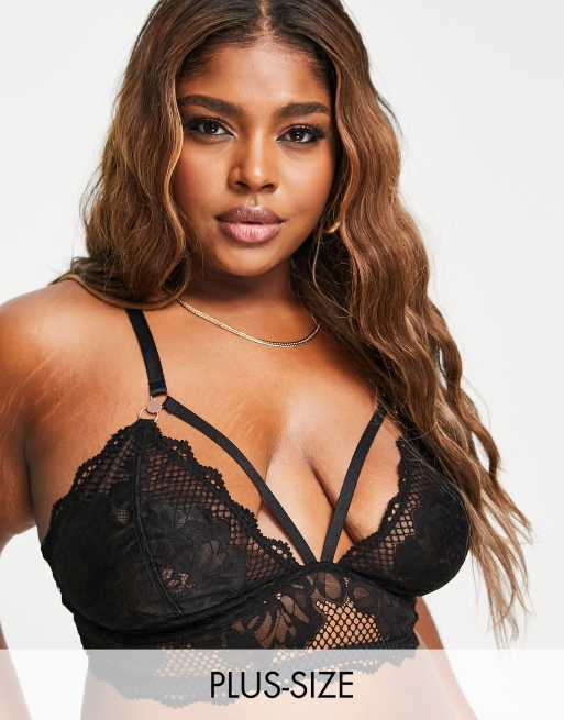 Figleaves Curve – Amore – Bralette in Schwarz mit Spitze und Fischnetz-Details und Schnürung im Rücken