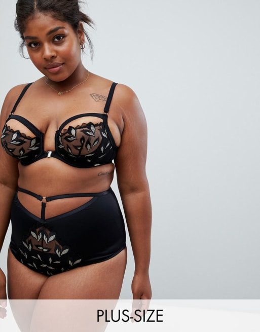Figleaves Curve – BH und Slip im Set mit Blattstickerei