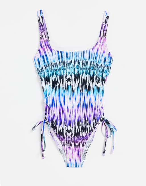 Figleaves – Größere Brust – Lima – Bügel-Badeanzug mit formender Bauchpartie und Batikmuster in Marmoroptik