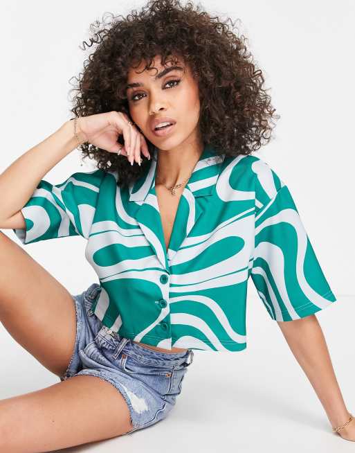 Fila – Kurzes Hemd in Blau mit Wirbelmuster