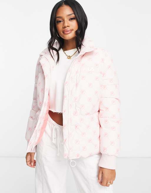 Fila – Rosafarbene Pufferjacke mit Print und Logo