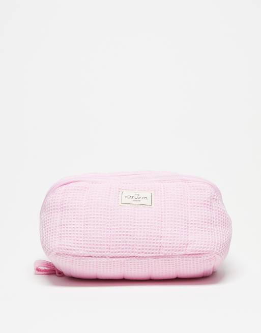 The Flat Lay Co. x ASOS – Exclusive – Marshmallow – Kastenförmige Kosmetiktasche zum flachen Aufklappen mit rosa Waffelstruktur