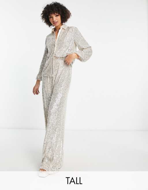 Flounce London Tall – Hose mit weitem Schnitt in funkelndem Metallic-Silber, Kombiteil