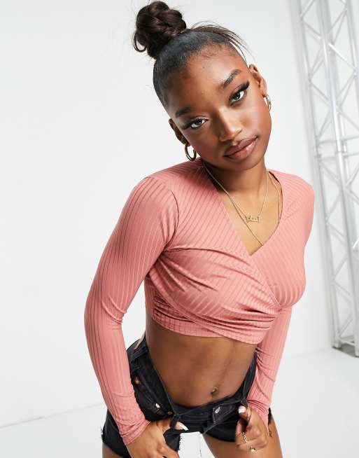 Flounce – Langärmliges Wickeloberteil in Rosa