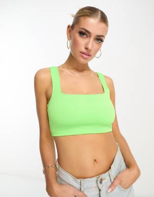 Flounce London – Anschmiegsames Oberteil in schimmerndem Grün mit kurzem Schnitt und eckigem Ausschnitt