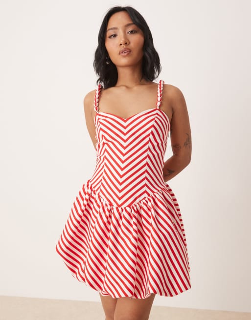 Forever New Petite – Gestreiftes Minikleid in Rot und Weiß mit Ballonsaum