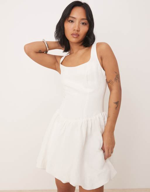 Forever New Petite – Minikleid in Weiß mit eckigem Ausschnitt und tiefem Saum