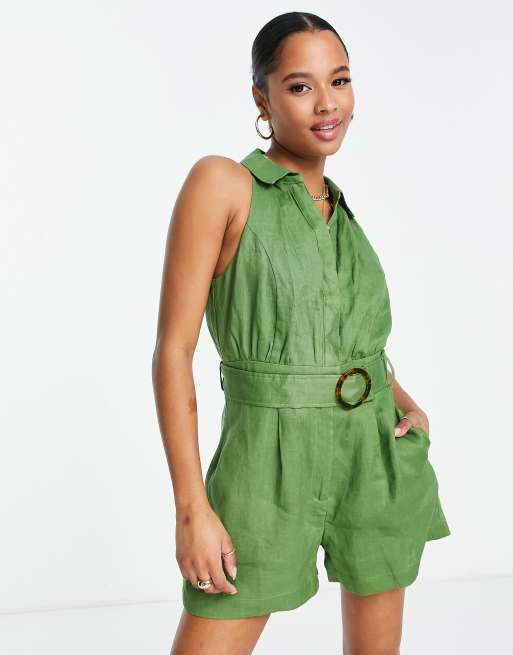 Forever New Petite – Playsuit in Olivgrün mit Gürtel